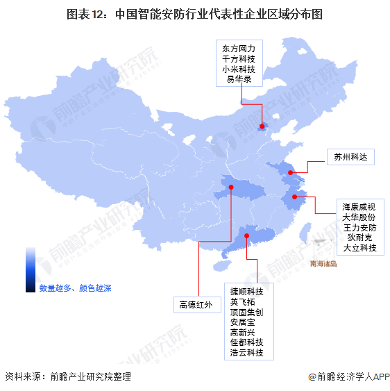 從代表性企業(yè)分布情況來看,智能安防軟硬件及系統(tǒng)集成企業(yè)主要分布于珠三角、長三角以及北京等地區(qū),運營服務(wù)商以廣東地區(qū)居多。